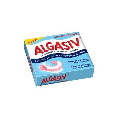 Cuscinetto morbido con due potenti adesivi naturali che blocca la dentiera tutto il giorno, protegge le gengive da fastidiose irritazioni e combatte i cattivi odori della bocca. Algasiv per dentiera inferiore è un morbido cuscinetto, con due potenti adesivi naturali, che blocca la dentiera tutto il giorno, protegge le gengive da fastidiose irritazioni e combatte i cattivi odori della bocca.