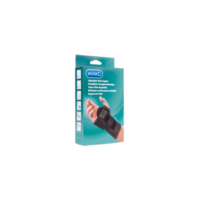 Descrizione Il tutore per il polso regolabile Alvita è ideato per sostenere il polso in caso di distorsione o artrosi, ma anche in caso di dolore diffuso. è dotato di un sostegno di metallo modellato per immobilizzare il polso, mentre le fasce regolabili garantiscono un ulteriore comfort e sostegno. Il prodotto è realizzato in materiale traspirante che consente una buona aereazione e contribuisce a prevenire il surriscaldamento e il disagio del paziente. Ambidestro, il tutore può essere indossato su entrambi i polsi, secondo le necessità.