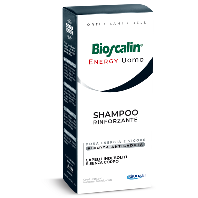 Bioscalin Energy Shampoo contiene inoltre AJB-Complex che associa alla Biotina, vitamina importante per i capelli, gli estratti selezionati di Ajuga reptans (pianta europea) che studi in vitro hanno dimostrato aiutare a inibire la 5 alfa reduttasi, una delle principali cause della caduta dei capelli nell'uomo. Specifici ingredienti funzionali restituiscono corpo e vigore alla chioma mentre pregiati componenti, tra cui derivati vegetali e pro-Vitamina B5, proteggono cute e capelli conferendo piacevole morbidezza.
